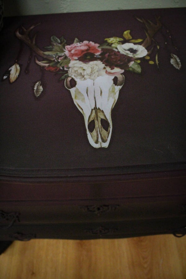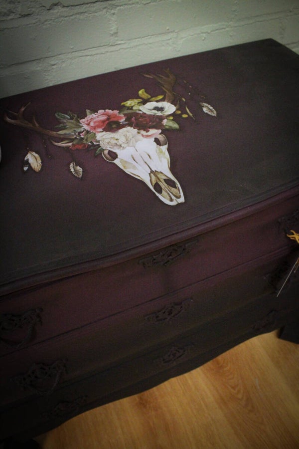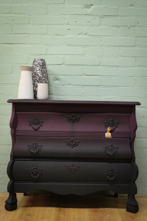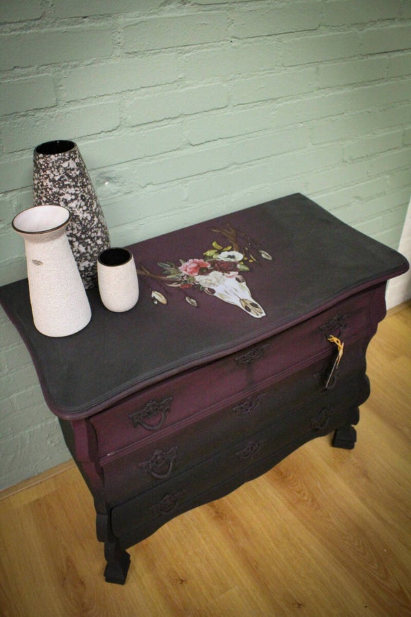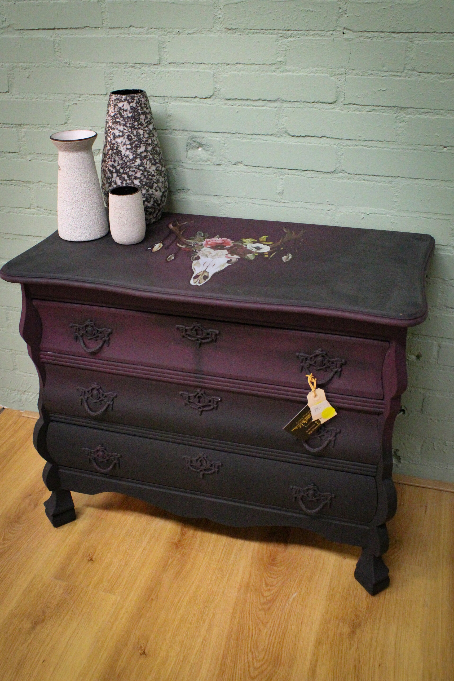 Ladekast overlopende kleuren van zwart naar cherry met een mooie transfer