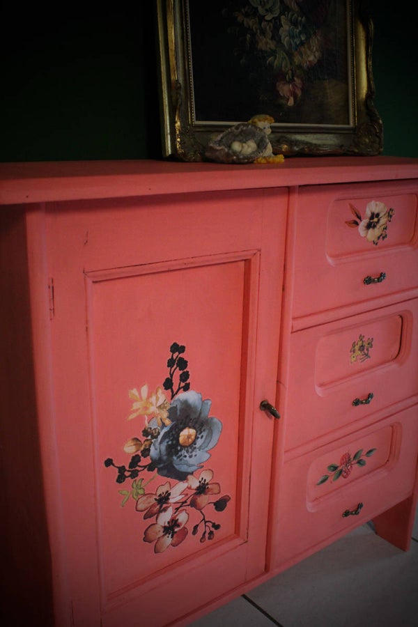 Leuk kastje in de kleur begonia.. Kijk goed naar de afmetingen want het is een leuk klein kastje ideaal voor op een kinderkamer