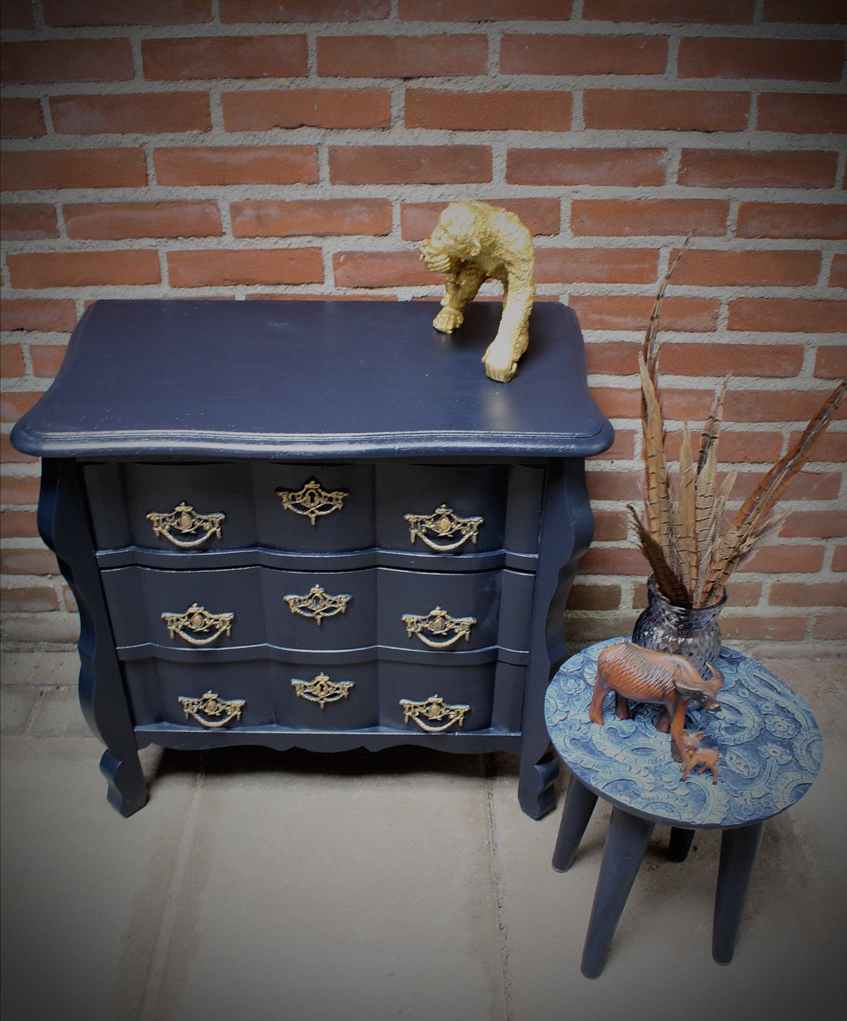 Mooie ladekast in de kleur inkwell met goudkleurig beslag