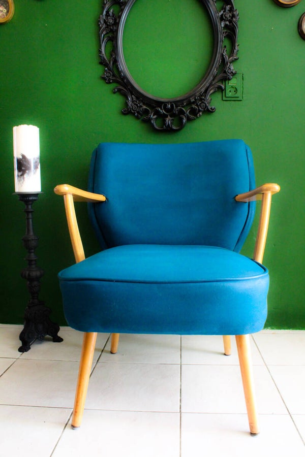 Vintage stoel in de kleur Prussian blue