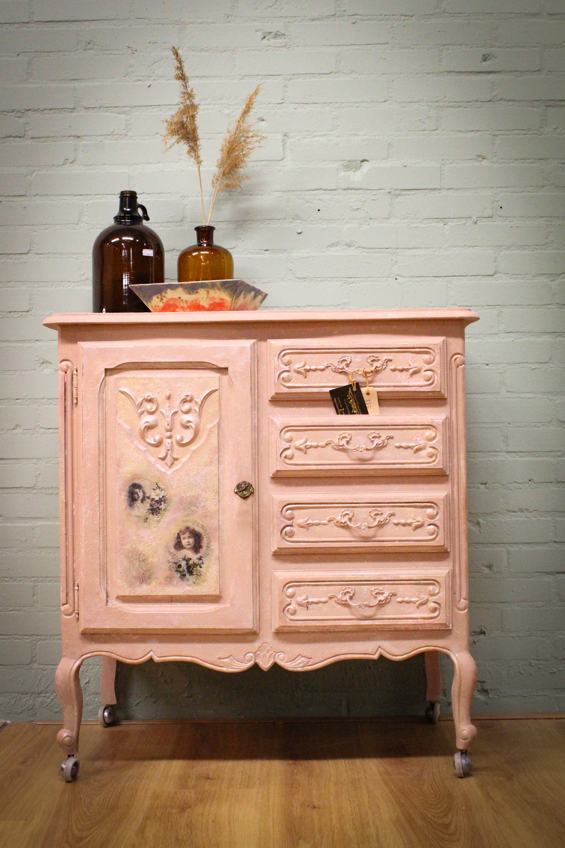 Prachtige Queen Ann kast op wieltjes