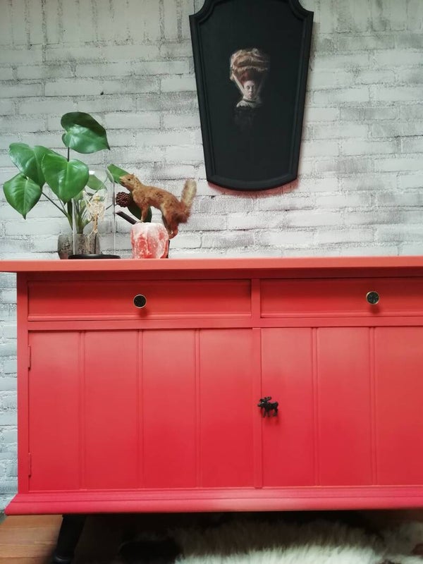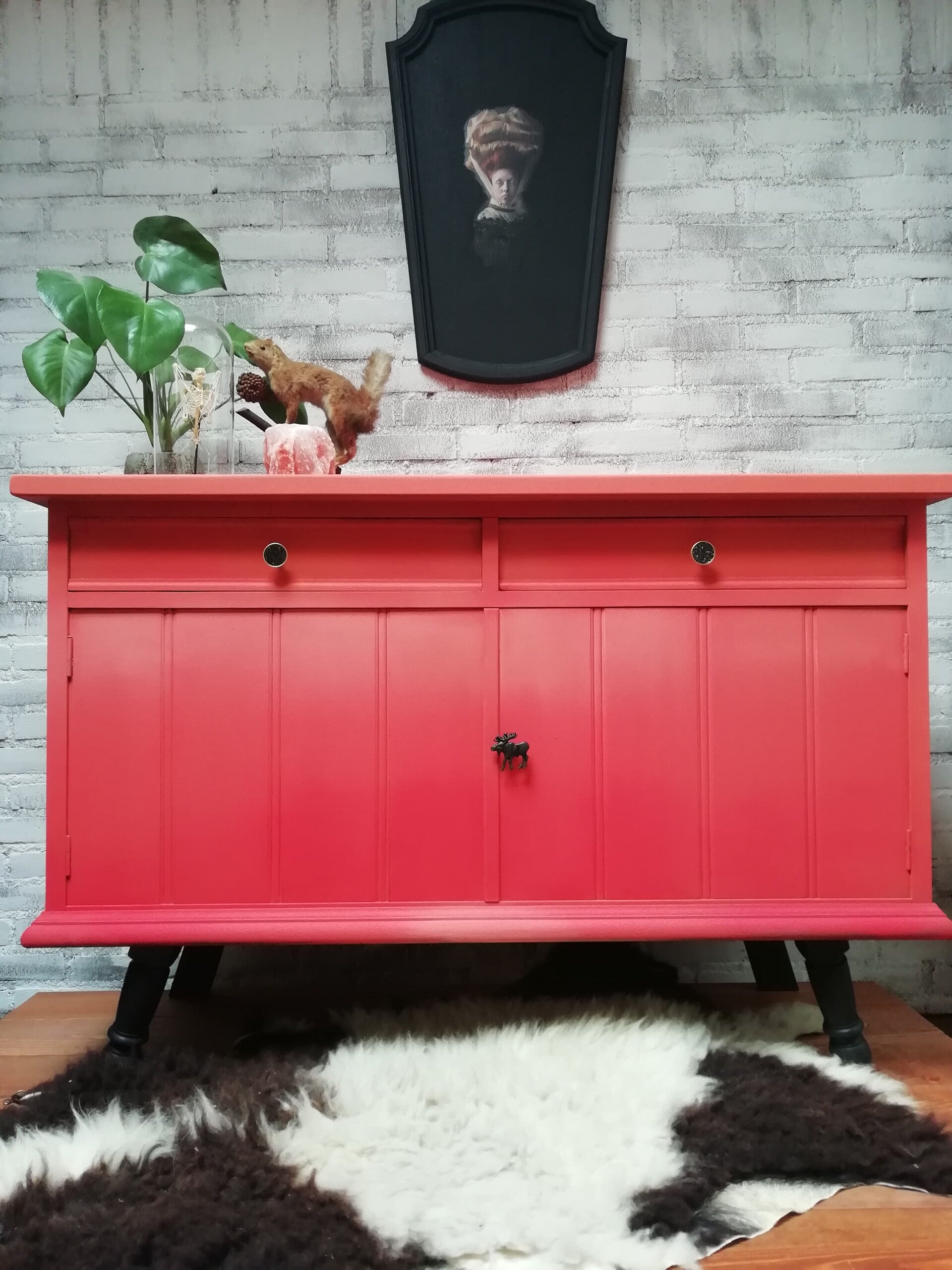 Mooi vintage dressoir in overlopende kleuren, deze kleur is echt op het moment een trend, ook mooi tegen een zwarte muur, 2 lades, 2 deurtjes.