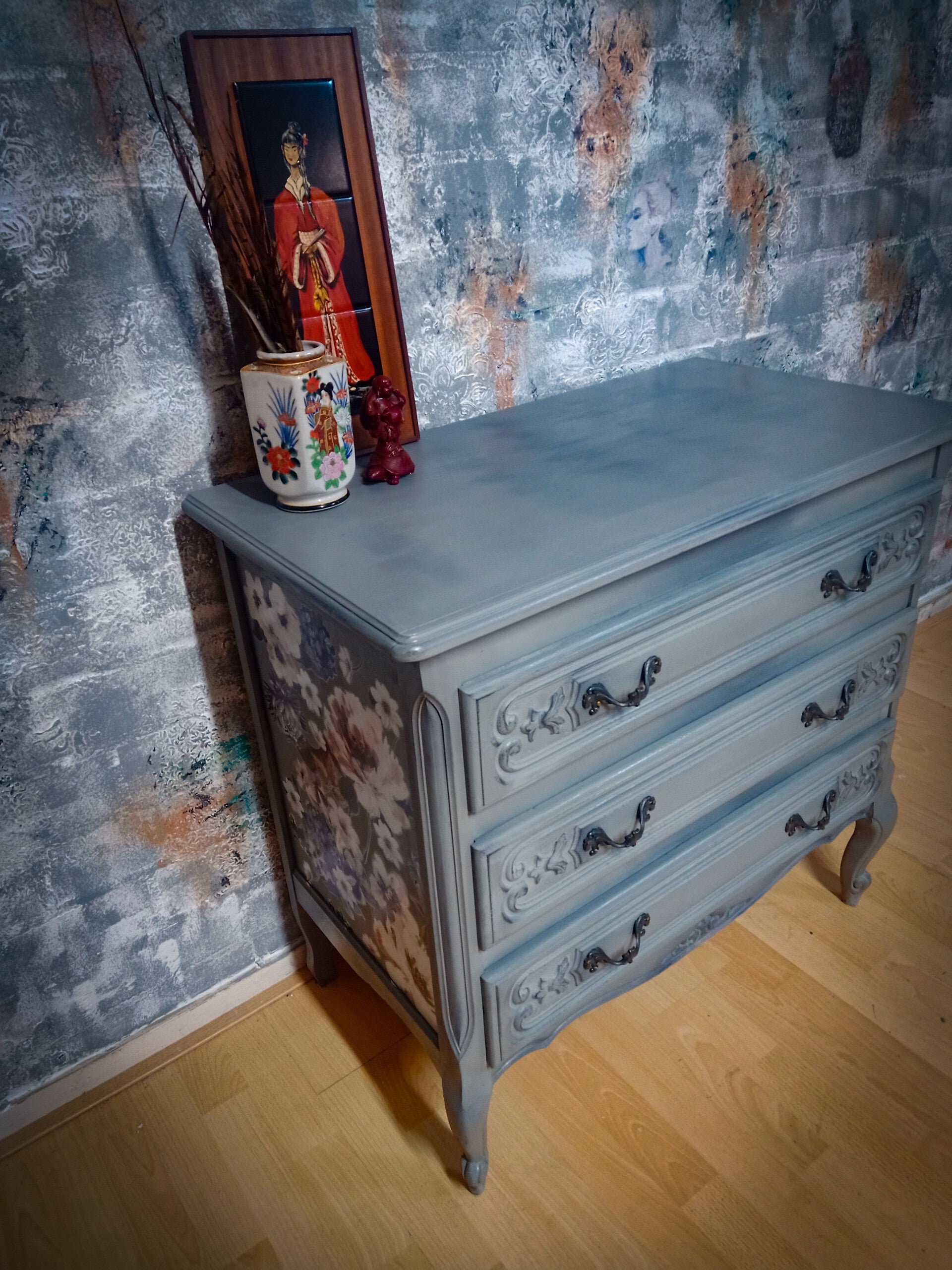 Aan beide zijdes van de kast een prachtig mooie bloementransfer ..